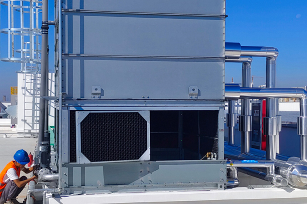 對(duì)于暫時(shí)不使用的設(shè)備,可將冷卻水塔或冰水機(jī)冷凝器的進(jìn)出口閥門關(guān)閉,放水閥門打開,將水排空即可。